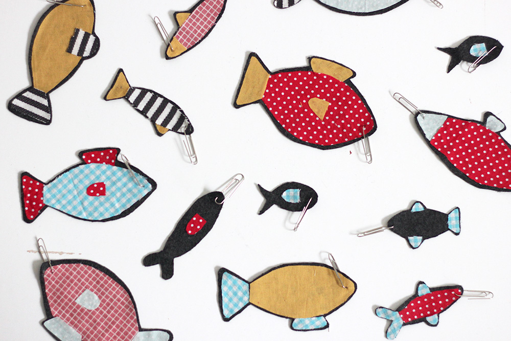 Så det fick bli metspö + fiskar. På spöet sitter en liten magnet längst ut och på varje fisk finns ett gem. Så tanken är att man ska få upp fiskarna med magneten, en i gången - vi får ju se hur det går och det återstår ännu att se hur länge det är intressant.